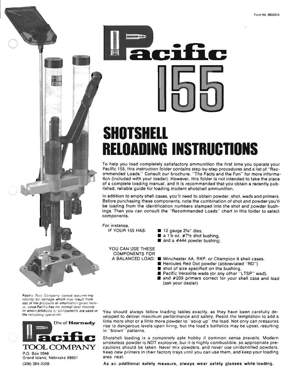 Hornady 155 Shotshell Reloader User Manual 7 Pages